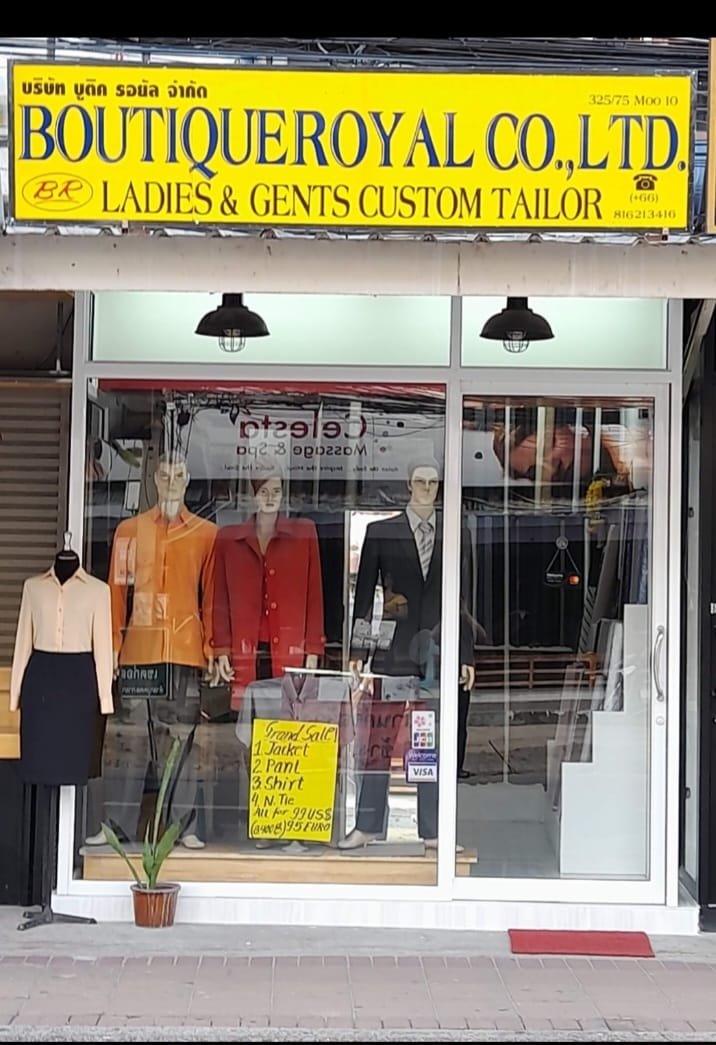 +66 81 621 3416Welcome to Boutique Royal, your destination for exquisite custom-tailored formal wear. With a focus on affordability and personalized service, we specialize in creating garments that fit you perfectly. Our experienced tailors are committed to crafting stylish pieces that reflect your unique taste and enhance your confidence. From elegant suits to sophisticated dresses, experience the luxury of tailored fashion and step out in style with Boutique Royal.
